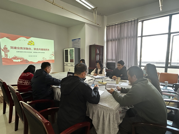 为深入学习党的二十届四中全会精神,校审计处党支部联合云南民族大学审计处党支部于2025年11月在云南民族大学呈贡校区弘道楼A1205党员活动室,开展了“党建业务深融合,联学共建提质效”主题党日活动。会议学习了《中国共产党第二十届中央委员会第四次全体会议公报》,解读财政部《关于进一步压实会计工作责任 加强会计法律法规和国家统一的会计制度贯彻实施的意见》,围绕审计职能职责,针对实际工作中存在的具体问题,开展交流研讨。